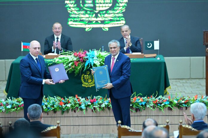 Prime Minister Muhammad Shehbaz Sharif and Azerbaijan President Ilham Aliyev witnessed the signing ceremony held here at the PM House.